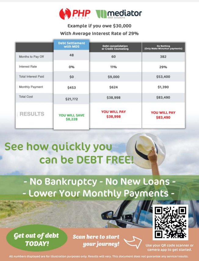 Are you behind on your credit card and unsecured debt? Many families are struggling to pay on their unsecured debt. Don’t procrastinate, protect your income and your assets against possible liens and income garnishments. Don’t wait until it is too late. Use my SM link to get a FREE consultation and look at your options: www.sm.phpdebtsolutions.com/links/1095340/647