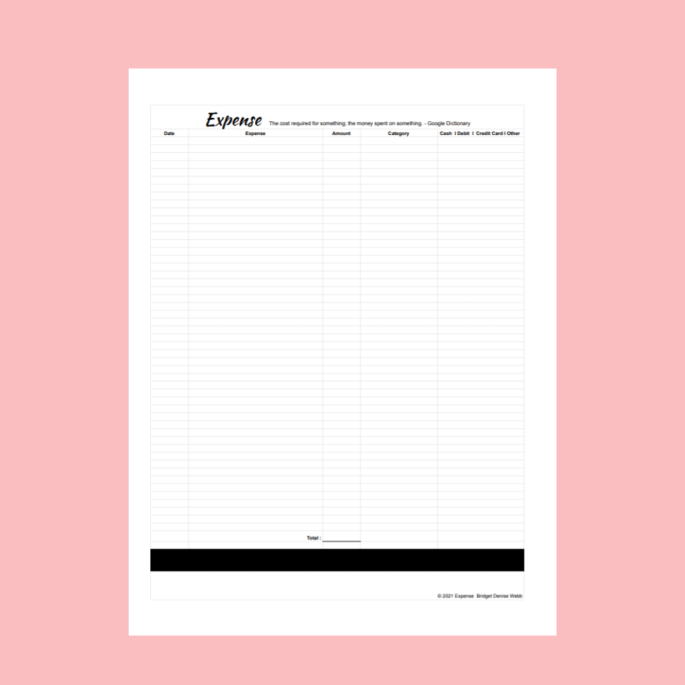 Expense is the cost required for something: the money spent on something. (Google). This is noted at the top of the Expense Tracker printable for sale above. This definition gives the focus and directive you should have and keep while using the Expense Tracker printable. Whatever is spent for something, the cost for it should be listed and therefore tracked.